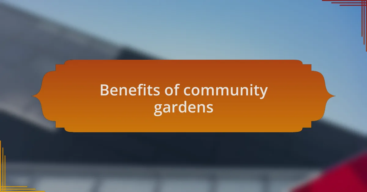 Another remarkable benefit I’ve experienced is the educational opportunities that arise in these gardens. The first time I participated in a workshop on composting, I felt a sense of empowerment from learning sustainable practices. Sharing that knowledge with others not only builds community ties but also inspires a new generation of environmental stewards. Isn’t it incredible how a simple garden can serve as a classroom for sustainability?